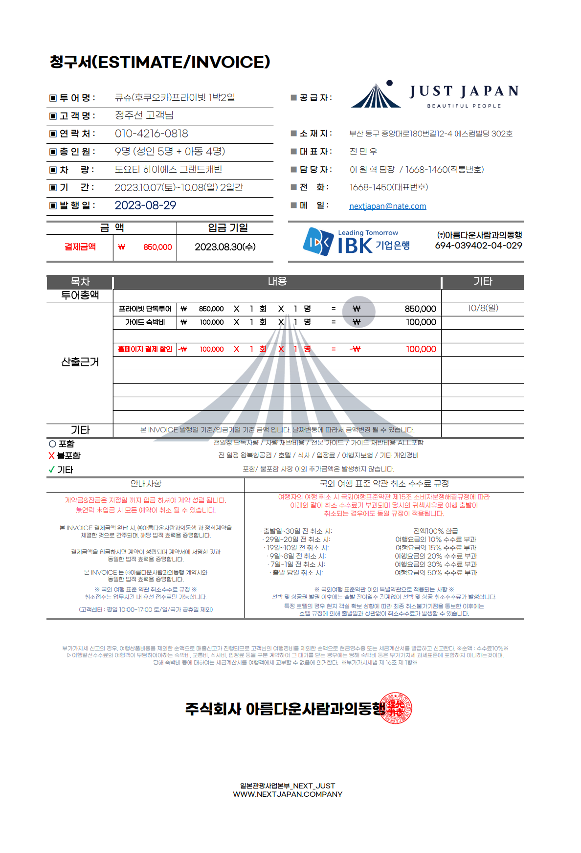 ※ 보험인증이란 : 기획상품 등을 판매하는 여행사라면 의무적으로 가입해야 하는 보증보험 으로